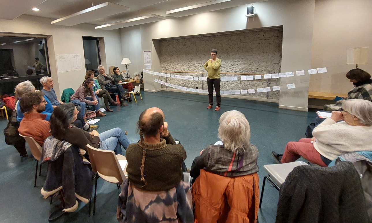 Après une courte introduction permettant de faire la distinction entre besoins essentiels et stratégies pour y répondre (inspirée des travaux de la communication non-violente), les personnes présentes ont été invitées à prendre un temps de réflexion pour choisir, parmi leurs propres besoins essentiels, 4 besoins à partager avec le groupe.